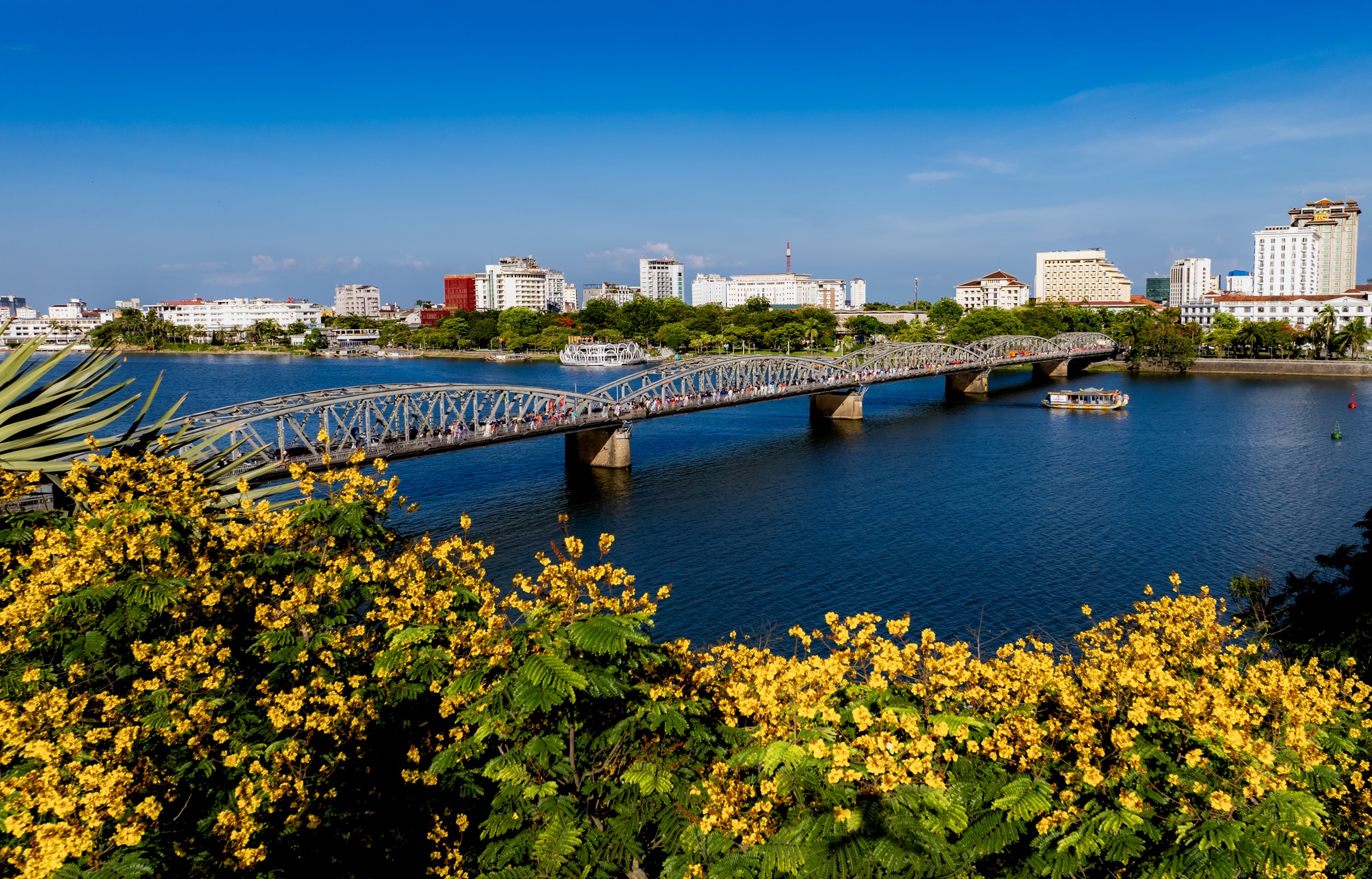 khu nhà số 23 - 25 Lê Lợi, phố đi bộ Nguyễn Đình Chiểu và cầu gỗ Lim bên bờ sông Hương thơ mộng.