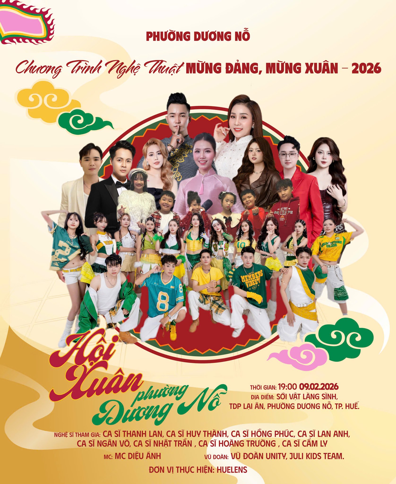 CHƯƠNG TRÌNH NGHỆ THUẬT “MỪNG ĐẢNG - MỪNG XUÂN 2026” - SẮC MÀU RỘN RÃ TẠI DƯƠNG NỖ